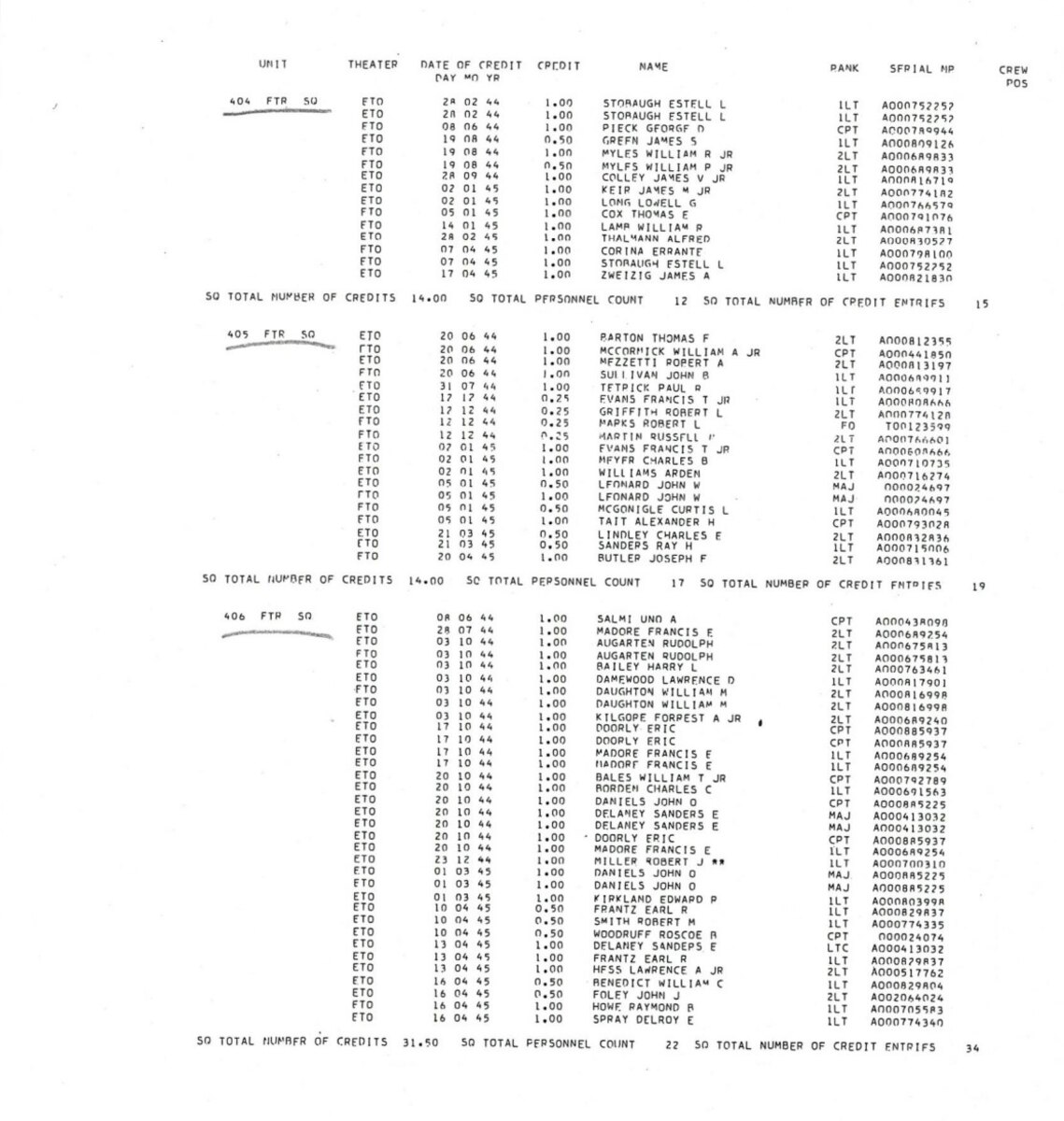 33 12 Dec 1944 1Lt. Francis T. Evans, Jr. 405 0.25 Me-109